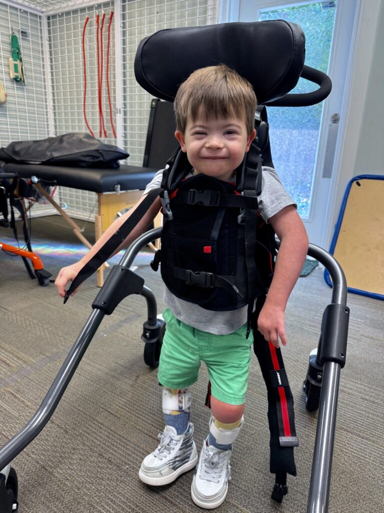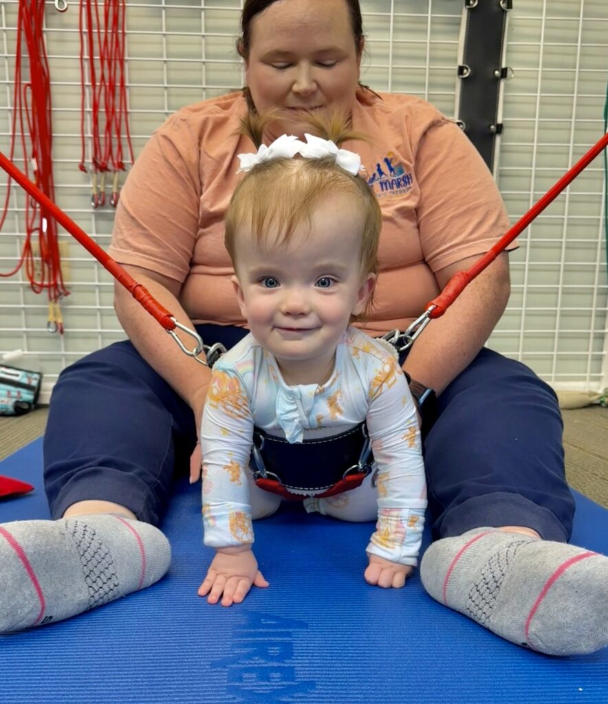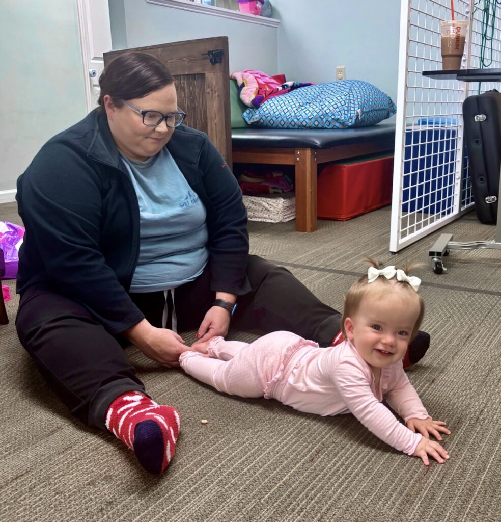 From the very first day, Julie earned Callaway’s trust which isn't easy to do. She knew exactly how to push her to work hard on crawling and even introduced her to a gait trainer for the very first time. Julie always recognized when Callaway needed a break, keeping each session positive, encouraging, and productive.